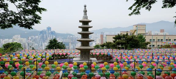 • 경내안내 5층 석탑 부처님의 사리, 대승 경전을 모셨으며, 신성한 예배의 대상으로 불보살님들과 마찬가지로 예배의 대상이 된다. 경건한 마음으로 탑을 돌면 전생 업장이 소멸하고 마음속의 삼악이 무너진다고 한다.